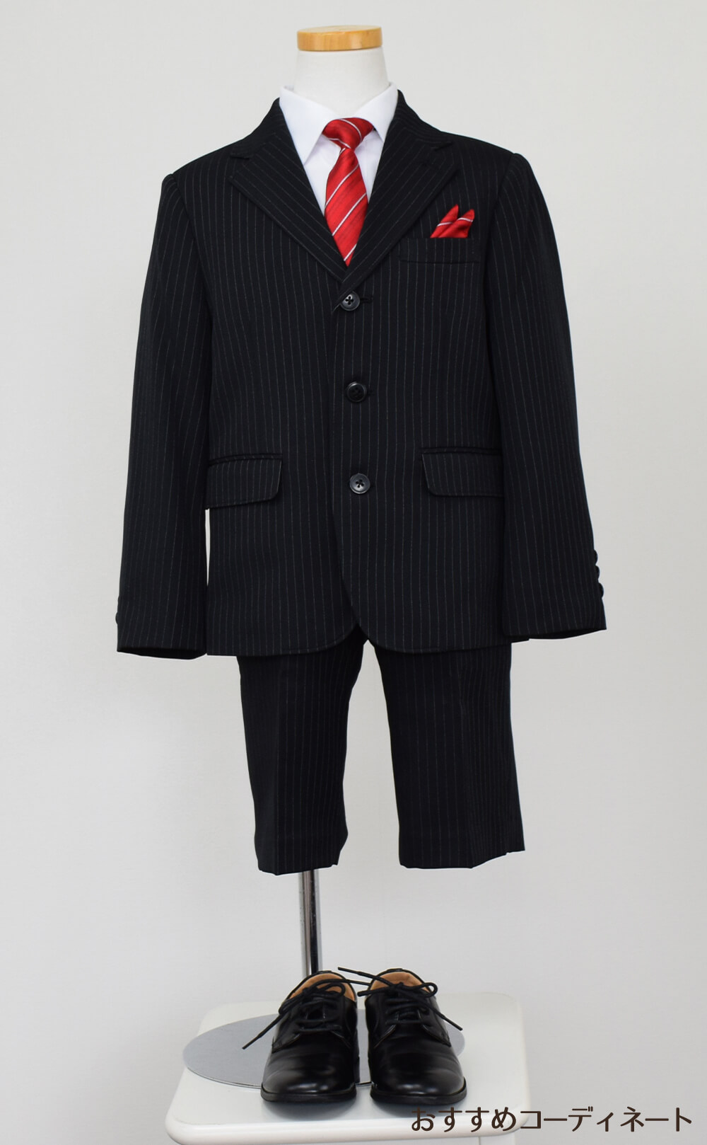 特別な日にぴったりのカラーの男の子用フォーマルスーツ。シンプルで美しいシルエットが魅力のAngel's Closetの子供フォーマル レンタル商品(【レンタル】3つ釦ストライプセットスーツ(CAT875400)120cm)|画像2