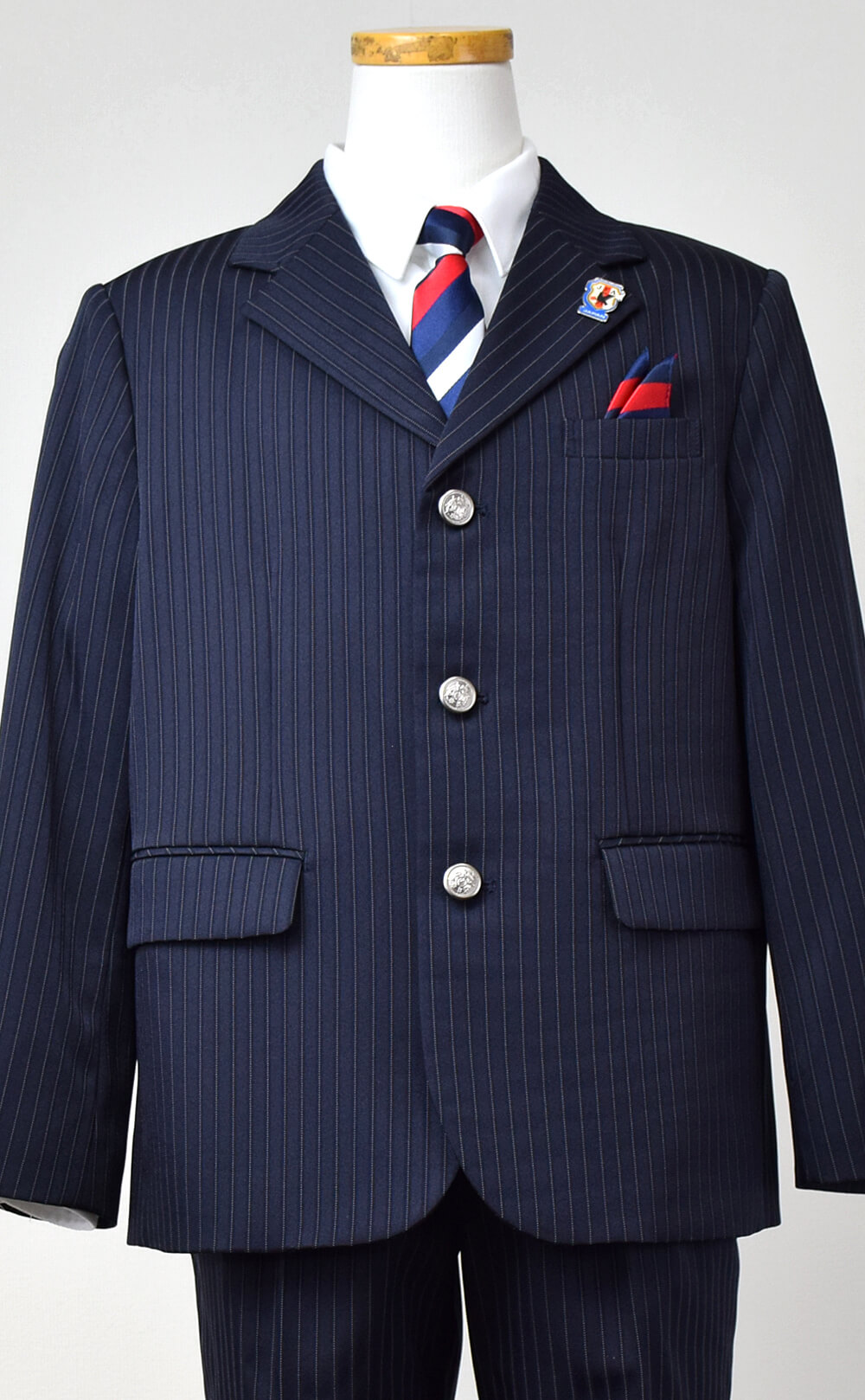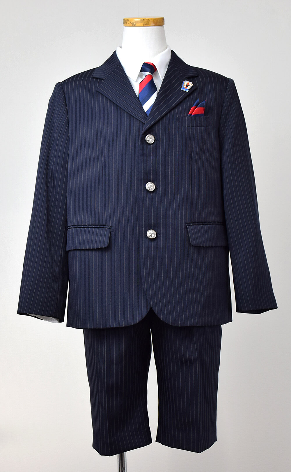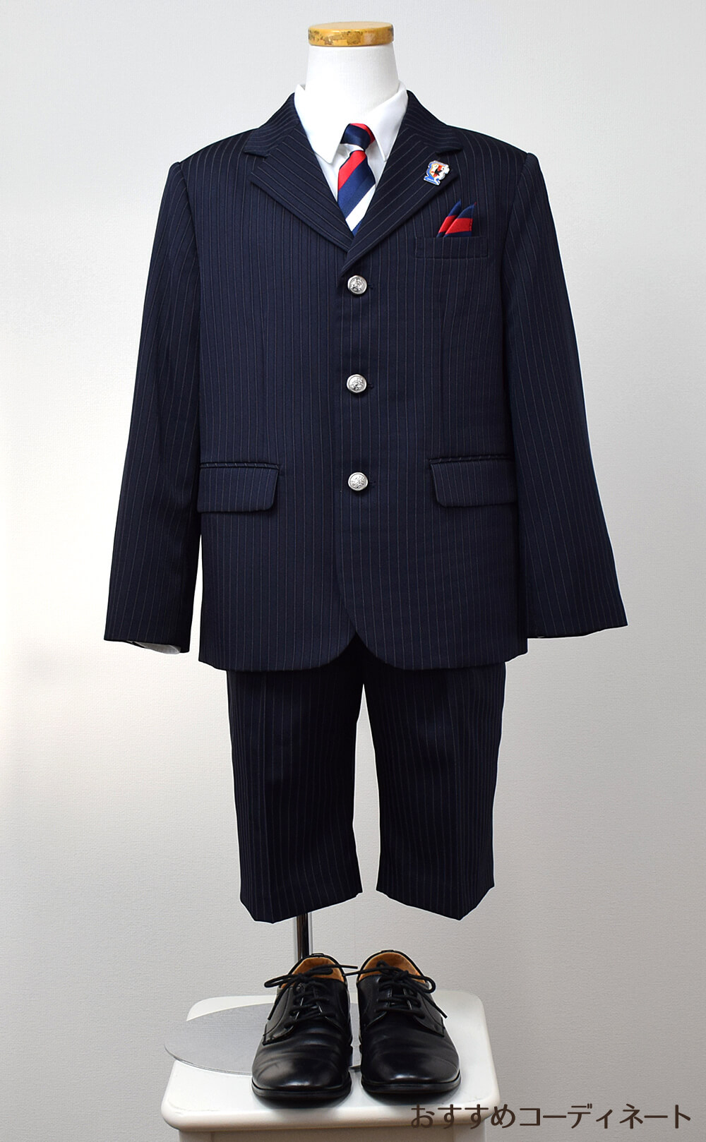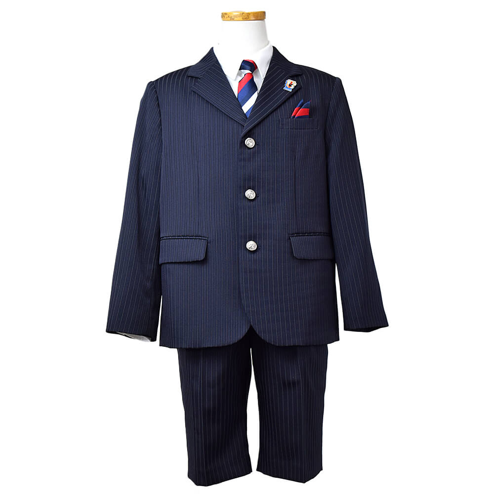 入学式,発表会,結婚式,どんなシーンでもこの1着でOK! 【レンタル】ゆったりB体タイプ ストライプハーフパンツ3つボタンセットスーツ6点セット【JFA SAMURAI BLUE】(CAT375495)120・130cm