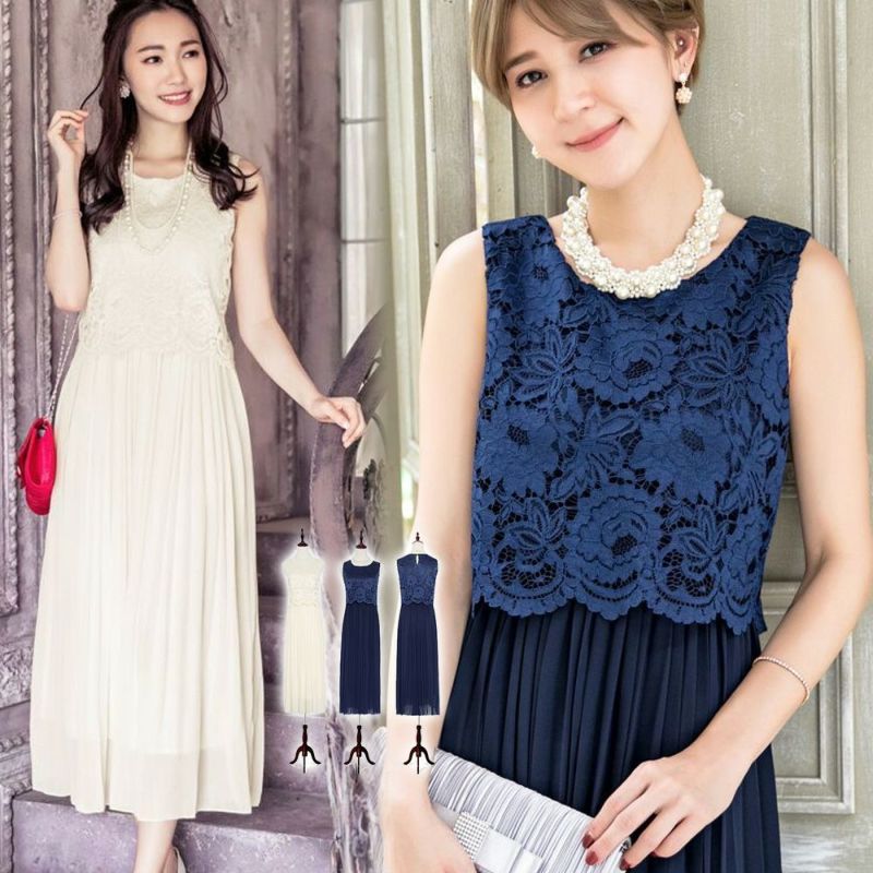 ノースリーブレース&アコーディオンプリーツドレス(YP034)
