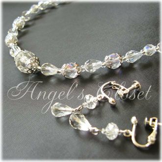 【ネコポス送料299円対象商品】クリスタルの輝きがお嬢様を優雅に引き立てます 子供フォーマルアクセサリー NEWクリスタルエンジェル2点セット(ACA22)【ネックレス・イヤリング】【発表会 結婚式 七五三】【即日発送可】 真白