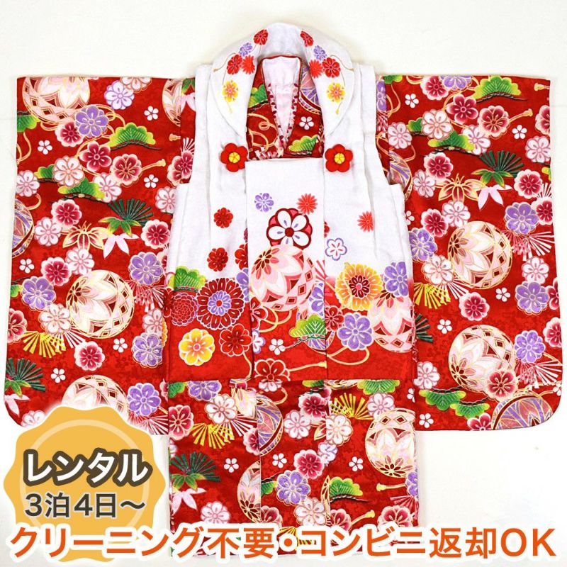 【レンタル】 七五三 着物 3歳 被布フルセット 8点セット 麗蘭 (赤)
